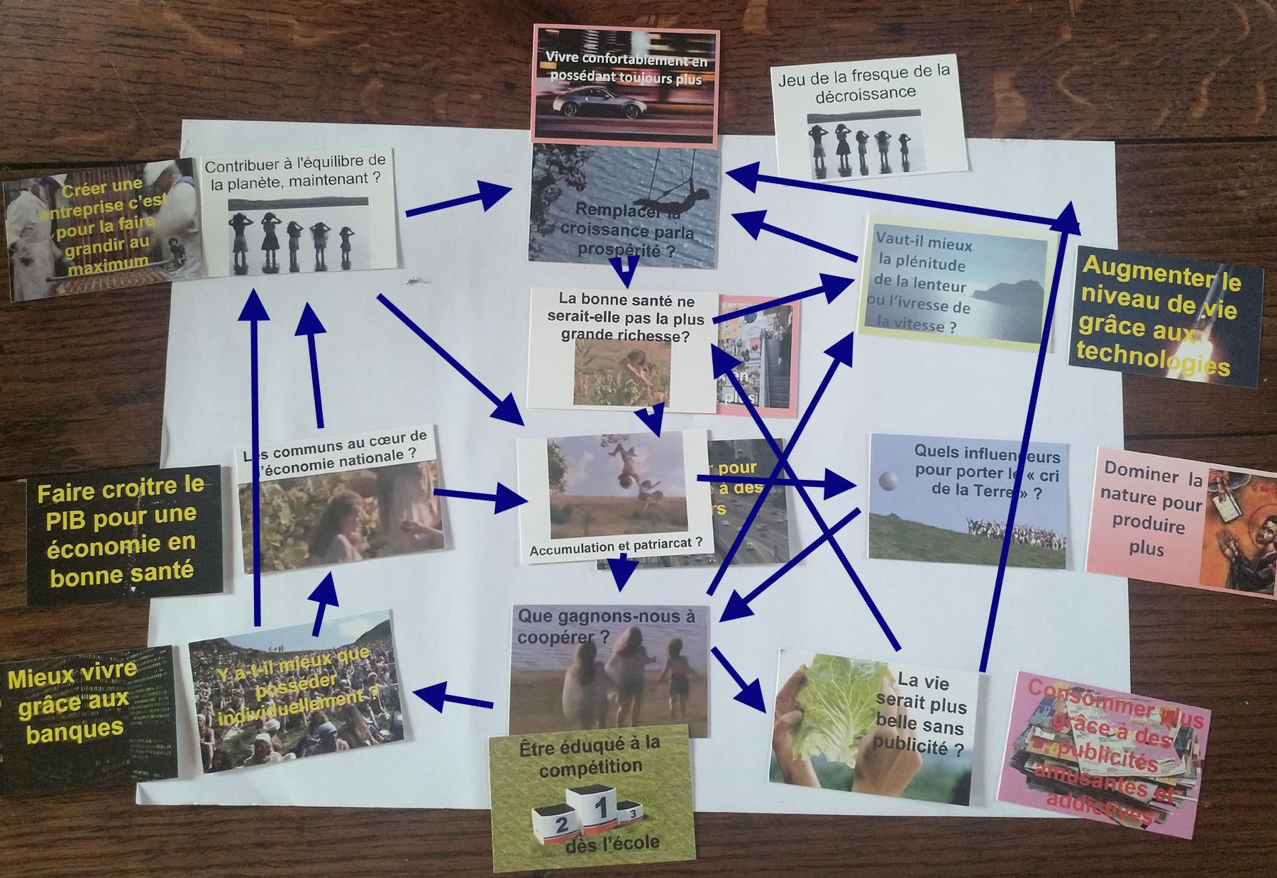 Puis après discussion et assemblage collectif, on peut y associer dix cartes de décroissance avec leurs encouragements vers la vie bonne.
